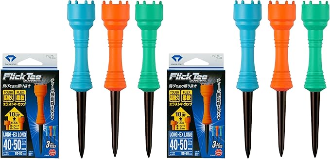 ダイヤゴルフ(DAIYA GOLF) ゴルフティー フリックティー 2段階高さ調節 ティーアップ高40・50mm 高耐久で柔軟性の高いエラストマーカップ 初心者 ゴルフ規則適合 日本製 3本入 TE-444