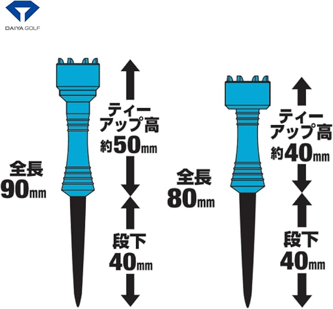 1本でティーアップ高さ40mm・50mmの2段階に10mmの調節が可能。