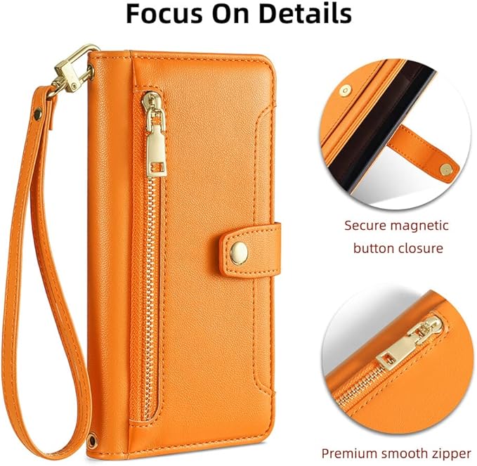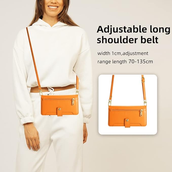 BASIO active SHG09 / BASIO Active2 SHG12 ケース 手帳型 ショルダー 適用 シンプルスマホ6 A201SH ショルダーケース ストラップ 長+短 2本 ベイシオ アクティブ2 スマホケース シンプルスマホ7 A404SH 手帳 【BonwFzin】 ストラップホール付き カード収納 バッグ スナップ 肩がけ 斜め掛け ファスナー 耐衝撃 カード オレンジ