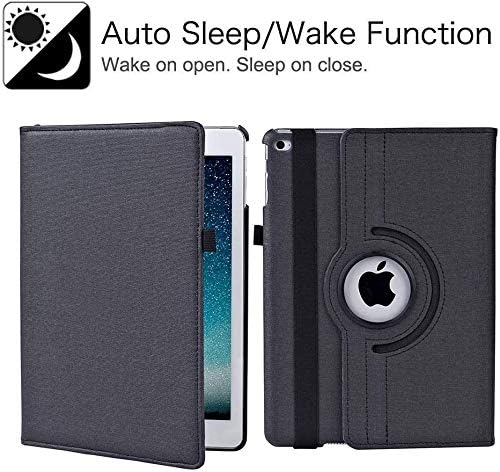 JXCX iPad 9.7 2018/2017ケース 新型(Newモデル)/iPad Air/Air2カバー iPad 9.7インチ(第6、5世代)軽量 手帳型 360度回転スタンド オートスリープ機能 3段階調節可能 固定バンド 脱落防止耐衝撃 耐久性 おしゃれデニム生地 (ブラック)