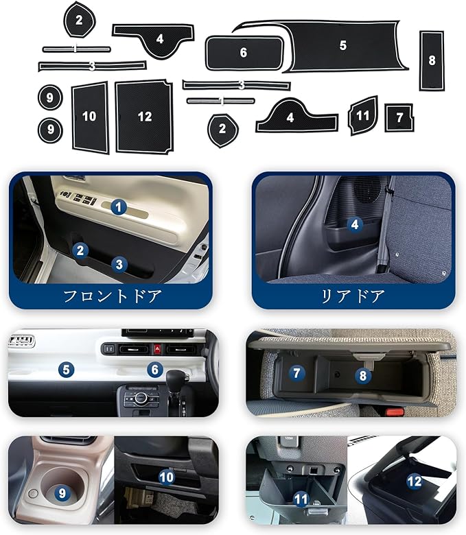 【RUIYA】ダイハツ 新型ムーヴ キャンバス 2代目 LA850S LA860S LA861S 専用 滑り止めマット ムーヴキャンバス インテリア ドアポケット ラバー ゴムマット ラバープレート ムーブキャンバスカー用品 専用 滑り止め 傷防止 ノンスリップ 防音 キズ防止 貼り付け簡単 ムーヴキャンバス アクセサリー 内装パーツ 車種専用 ホワイト