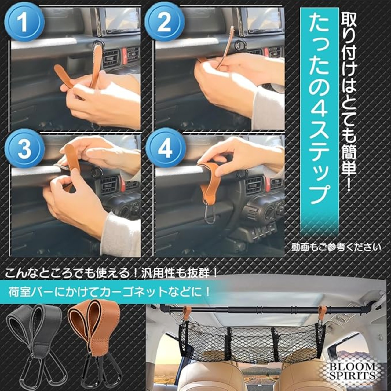 BLOOM SPIRITS ジムニー JB64 JB74 アクセサリー アシストグリップ コンビニ フック カスタム 収納 2個セット (キャメル カラビナ2個)