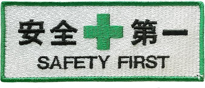 安全第一 刺繍ワッペン 白 緑ライン 10 4㎝ パッチ (アイロン接着タイプ)