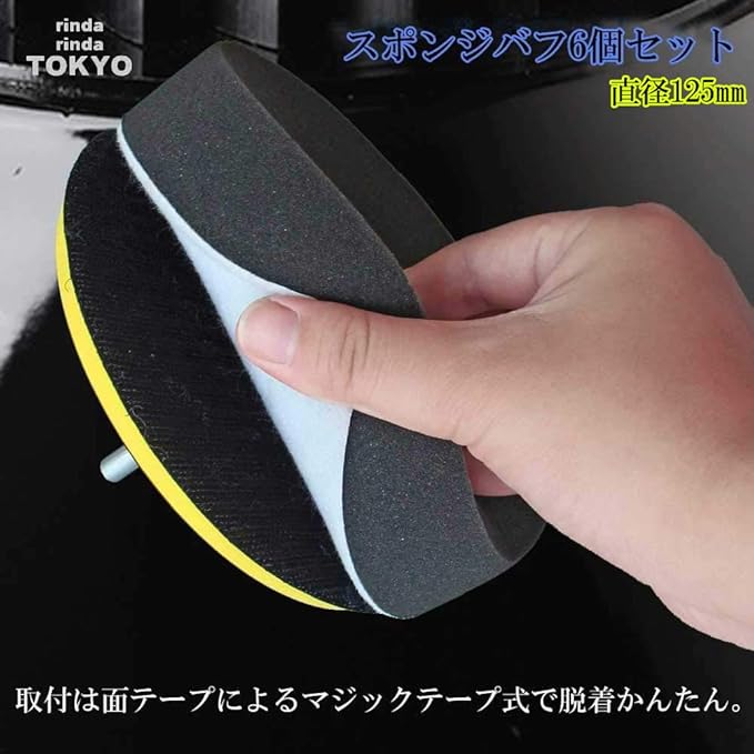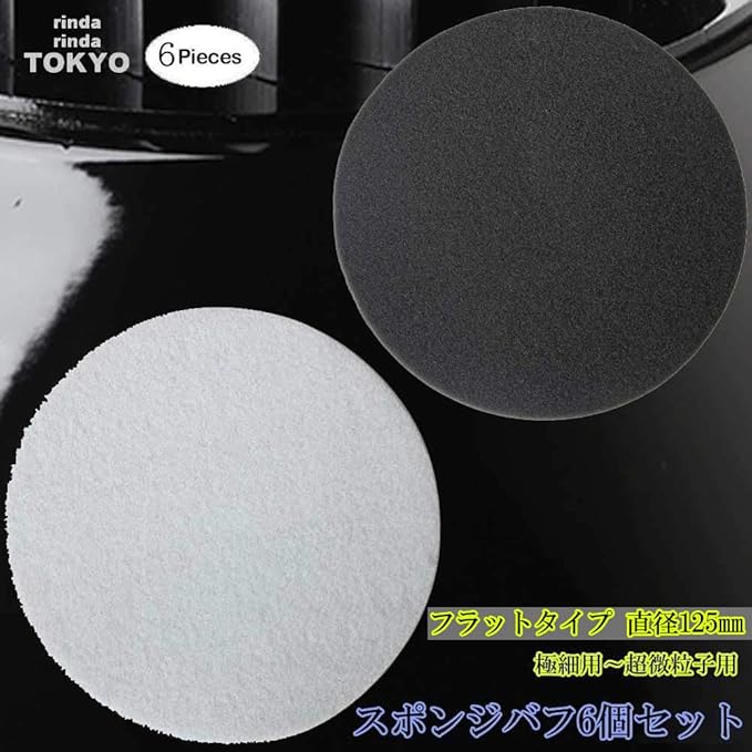 rinda スポンジバフ バフ 【 6個 】小型 125mm ウレタン 電動 ポリッシャー 極細用~ 超微粒子用 フラット タイプ マジックテープ式 洗車 研磨 ワックス