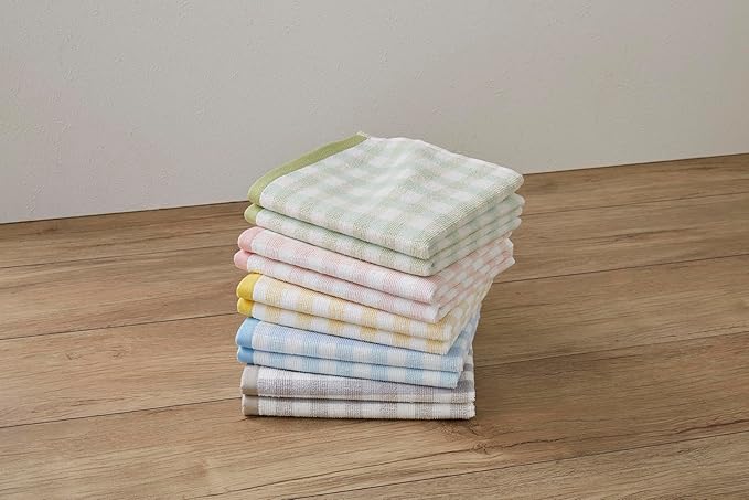 【どどーんと、まとめて! 】たっぷりつかえる大容量! チェック柄のフェイスタオル5色10枚セットです。毎日、その日の気分で使い分け! ご家庭はもちろん、業務用としも使いやすいタオルです。