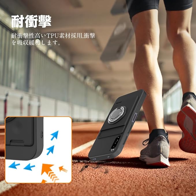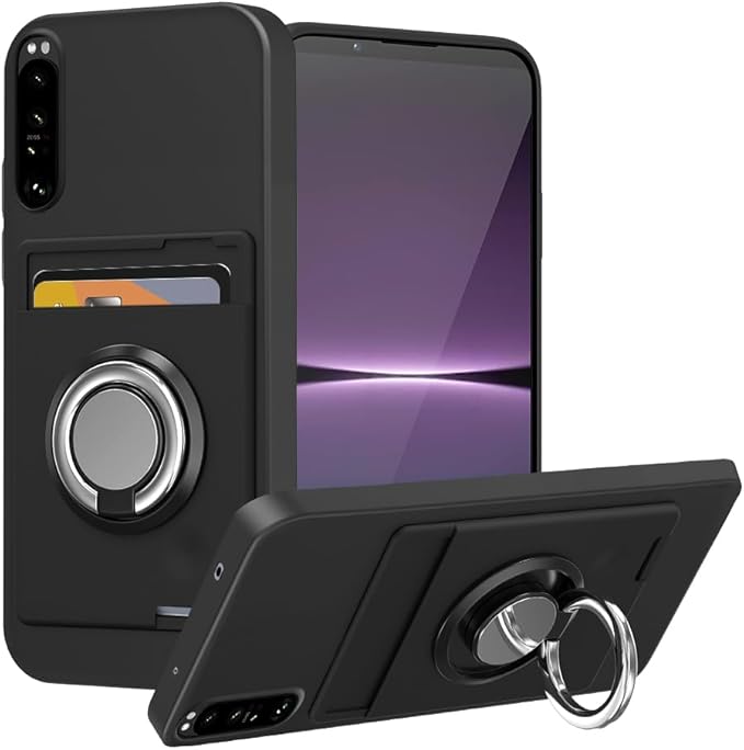 対応 Xperia 1 IV SOG06 ケース SO-51C リング付き シリコン カード収納 エクスペリア1IV/4 ケース スタンド機能 360 回転リング 滑り止め 黑