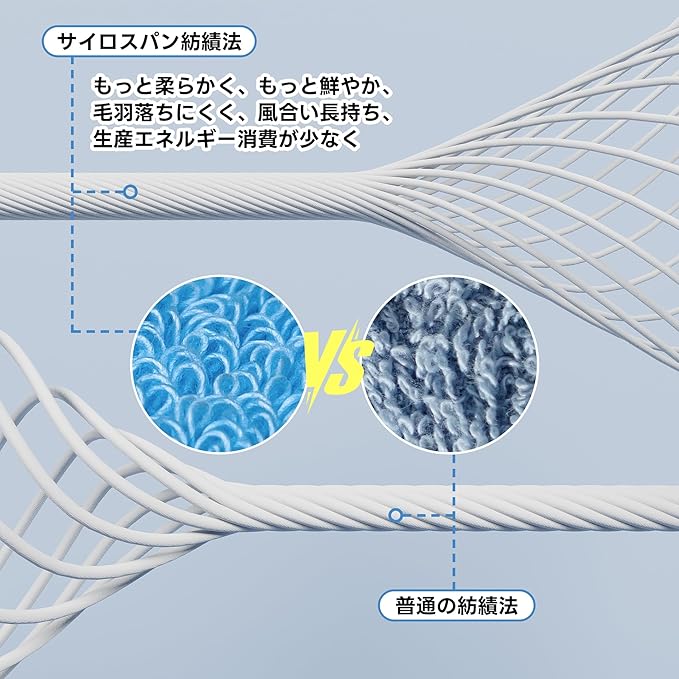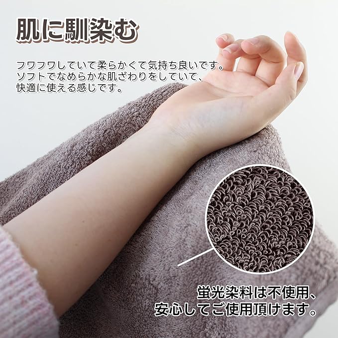 3.柔らかな肌触り:先進のサイロスパン紡績法を採用し、パイルが独自の輝きを持ち、深みのある上品で滑らかな色彩を備えております。繊細な柔らかさが生まれます。滑らかで柔らかな肌触りを実現しました。触れたくなるほど快適な肌触りを提供いたします。日常使いタオル、ガンガン洗って使っていただけるので、ご家庭用にも、保育園、幼稚園、美容室、サロン、病院、施設、飲食店など業務使用にもおすすめです。