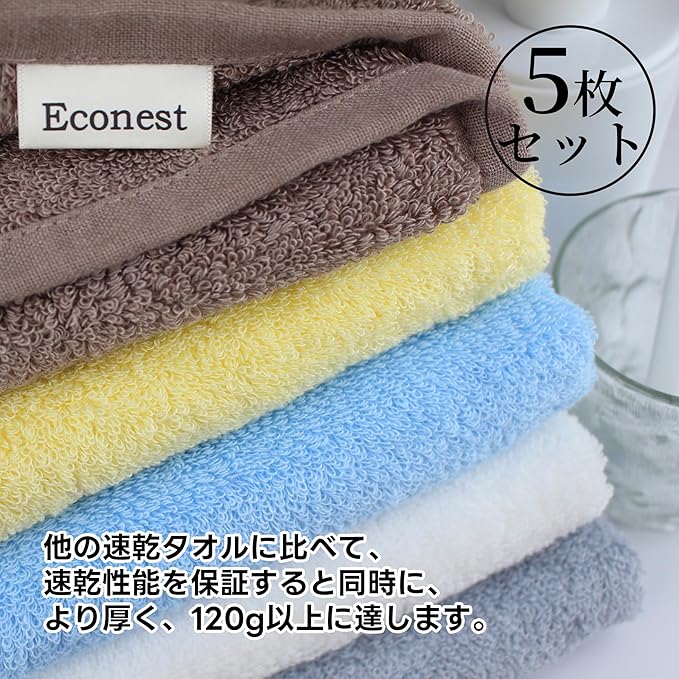 Econest バスタオル 選べる5色 2枚セット 肌に優しい 耐用 速乾 吸水タオル 柔らかい 一夜干し 絞りやすく 毛落ちしにくい 家庭 ホテル サロン スポーツ 業務用
