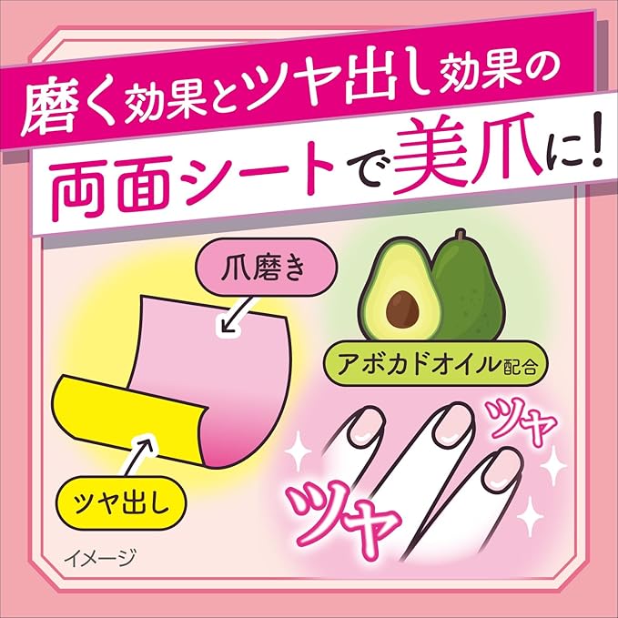 ●「磨く効果」と「ツヤ出し効果」がある両面タイプの爪磨きシート。研磨面に含まれた超微粒子が爪表面の凹凸をなめらかに整える