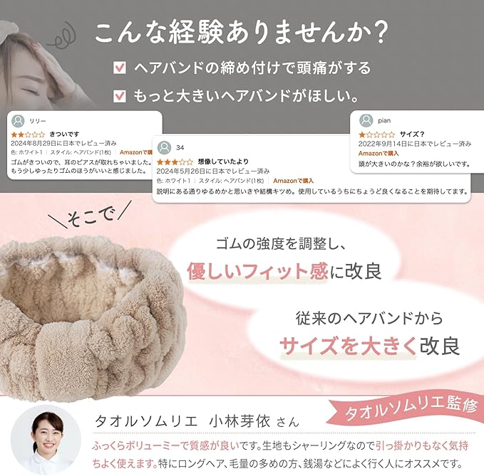 【タオルソムリエ監修】タオルの専門家「タオルソムリエ」に監修として、商品開発・改善のアドバイスをいただきました。ロングヘアの方はもちろん、ショートヘアの方もお気軽にお使いいただけます。