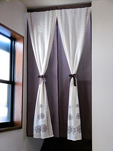 天然素材の綿100% ふんわりやわらか ナチュラルおしゃれな2重のれん 幅85 丈150cm (ブラウン)