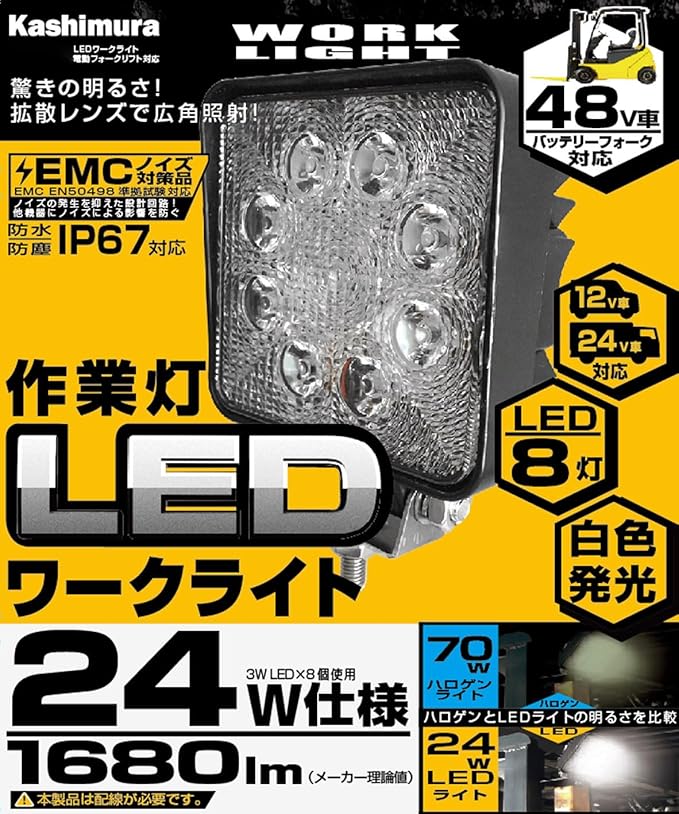 カシムラ(Kashimura) LEDワークライト電動フォークリフト対応 2個セット LED8灯 白色 24W 1680lm 6000K ノイズ対策 IP67 DC12/48V NML-107