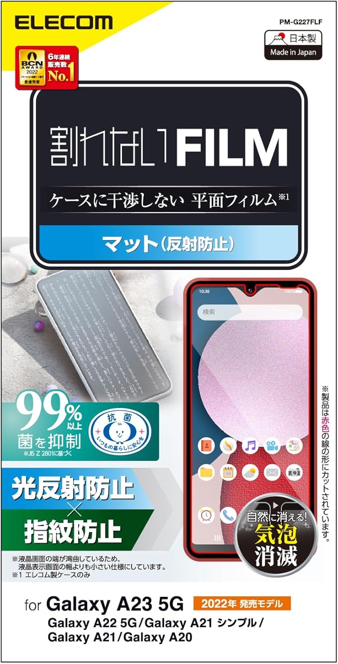 エレコム(ELECOM) Galaxy A23 5G [ SC-56C | SCG18 ] / A22 5G [ SC-56B ] / A21 [ SC-42A | SCV49 | SCV49 ] / A20 [ SCV46 | SC-02M ] フィルム アンチグレア マット 反射防止 指紋防止 抗菌 気泡レス PM-G227FLF クリア