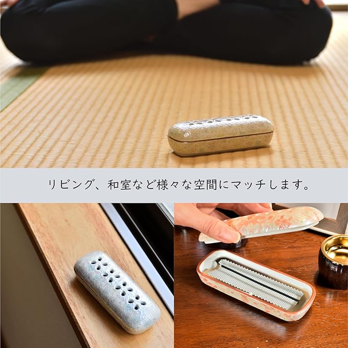 瞑想、禅(ZEN)、マインドフルネスのおともにも。インセンスホルダーとして、リラックスする香りのお香、お線香を焚いてご使用いただけます。個箱入りのため、線香とセットでの贈り物にもおすすめです。