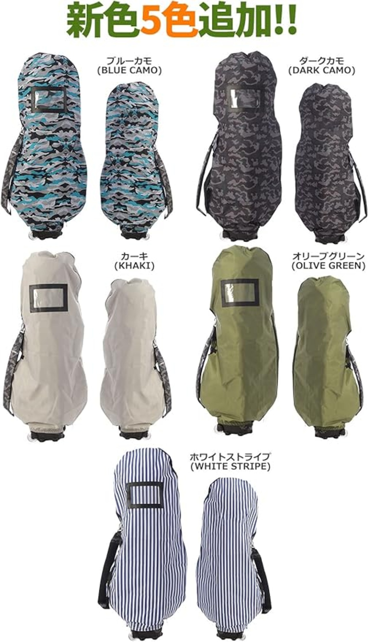 ※パソコンやスマホによっては実際の色と多少異なる場合があります。 【製品仕様】 【OOWLS 軽量高耐久ゴルフバックカバー トラベルカバー】 ・ダブルファスナー採用で被せるだけの簡単装着 ・大学ノートB5サイズまでたためるコンパクト収納タイプ ・宅急便各社対応クリア防水伝票入れ付 ・耐久性と撥水性に優れた、丈夫な厳選ポリエステル素材使用 ・10.5型、48インチ対応のキャディバッグまで対応 ・最下部のマジックテープによりカバーをしっかり固定。地面に擦らずに利用可能。 ・サイドのマジックテープからはハンドルやショルダーストラップを出して便利に持ち運びできます。 品番:JYPRF22TRC 素材:ポリエステル サイズ:132 62cm前後(平置き)10.5型 48インチ対応 カラー:ブラック、ネイビー、オレンジ、グレー、チェック、ブラックカモ、サイケデリック、カモ、ボーダー、ホワイトストライプ,ダークカモ、ブルーカモ、オリーブグリーン、カーキ 製造国:中国