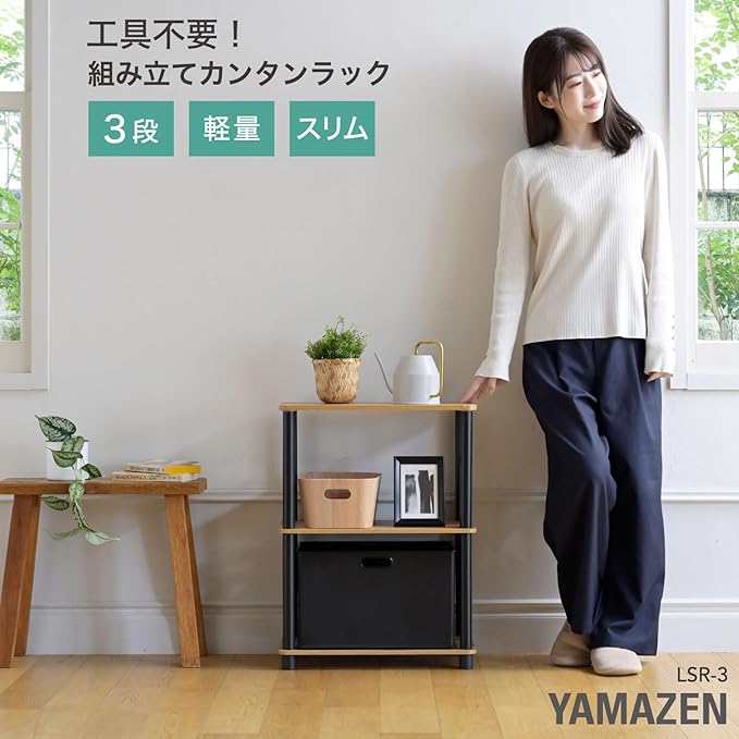 山善(YAMAZEN) ラック 3段 棚 組立カンタン 軽量 オープンラック シェルフ 収納棚 一人暮らし 幅47 奥行27 高さ63.5cm 組立品 オーク4/ブラック LSR-3(OAK4/BK)