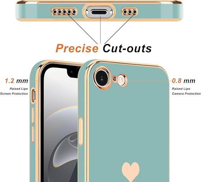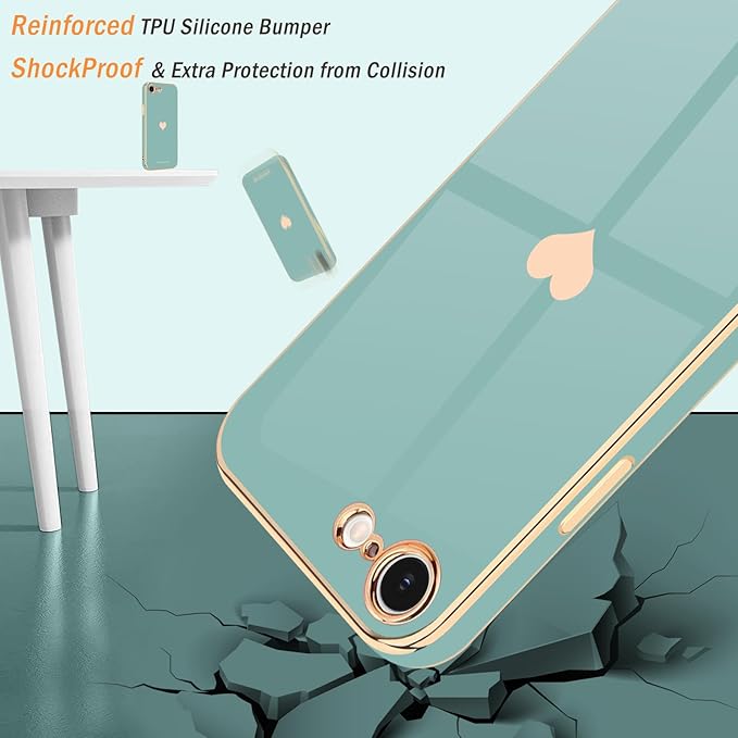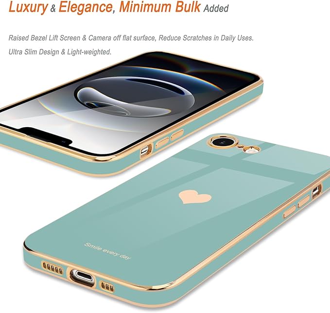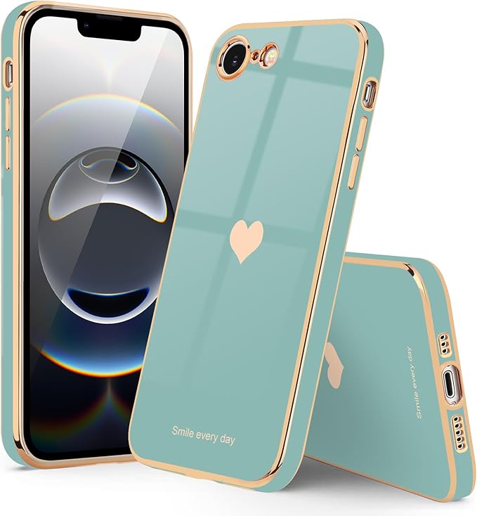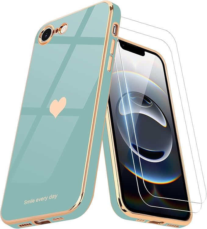 Teageo 適用 iPhone 16e ケース【1枚ケース+2枚ガラスフィルム】 少女の 可愛い 愛心の形 メッキ加工保護ケース 薄型 TPU ワイヤレス充電対応 全面保護 耐衝撃 落下防止 電話カバー 対応 iPhone 16e スマホケース(シアン)