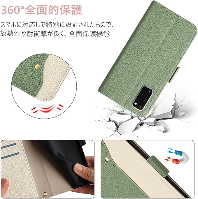 FEYYXI galaxy s20 ケース 手帳型 ギャラクシー S20 手帳型 ケース ぎゃらくしー S20 財布型 カバー カードポケット付き ケース 全面保護 スマホケース カード収納 横置きスタンド機能 擦り傷防止 おしゃれ 上質な手触り 高級PUレザー ケース(Galaxy S20 SC-51A SCG01 6.2inch) 緑