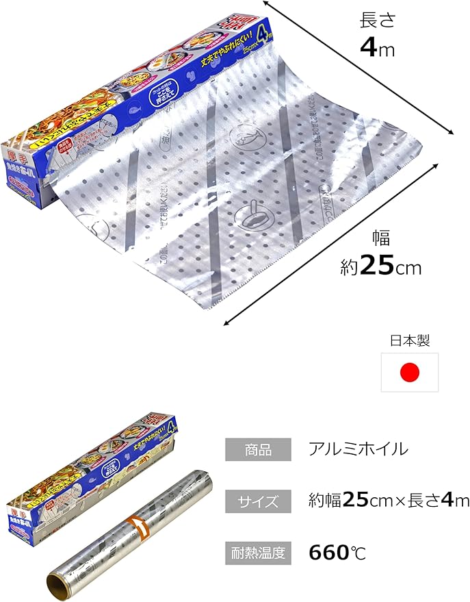 エムエーパッケージング 三菱アルミニウム アルミホイル 厚手 魚焼き 三菱ホイル 幅25cm 長さ4m 国産 アルミニウム箔