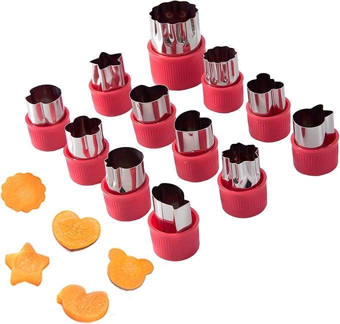 YACHUN クッキー 型抜き 12個セット 多角形 星型 型抜きお弁当 キャラ弁 ご飯型 果物 野菜カッター ステンレス製 DIY手作り 製菓用品 保護キャップ付き 傷防止 初心者に最適(赤)