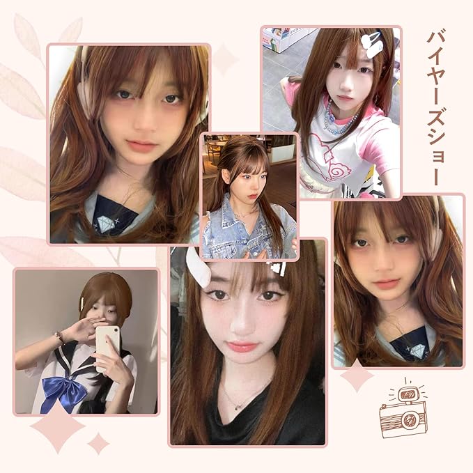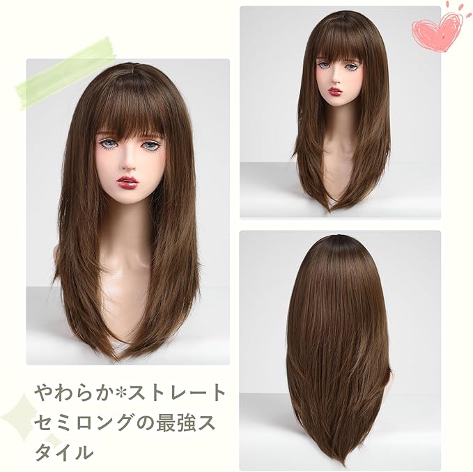 HAIRCUBE ウィッグ セミロング ストレート レイヤードカット ミディアム フルウィッグ かつら レディーズ wig ぱっつん前髪 自然 小顔 耐熱 原宿系 ロリータ 日常 ネット/櫛付(ブラウン)
