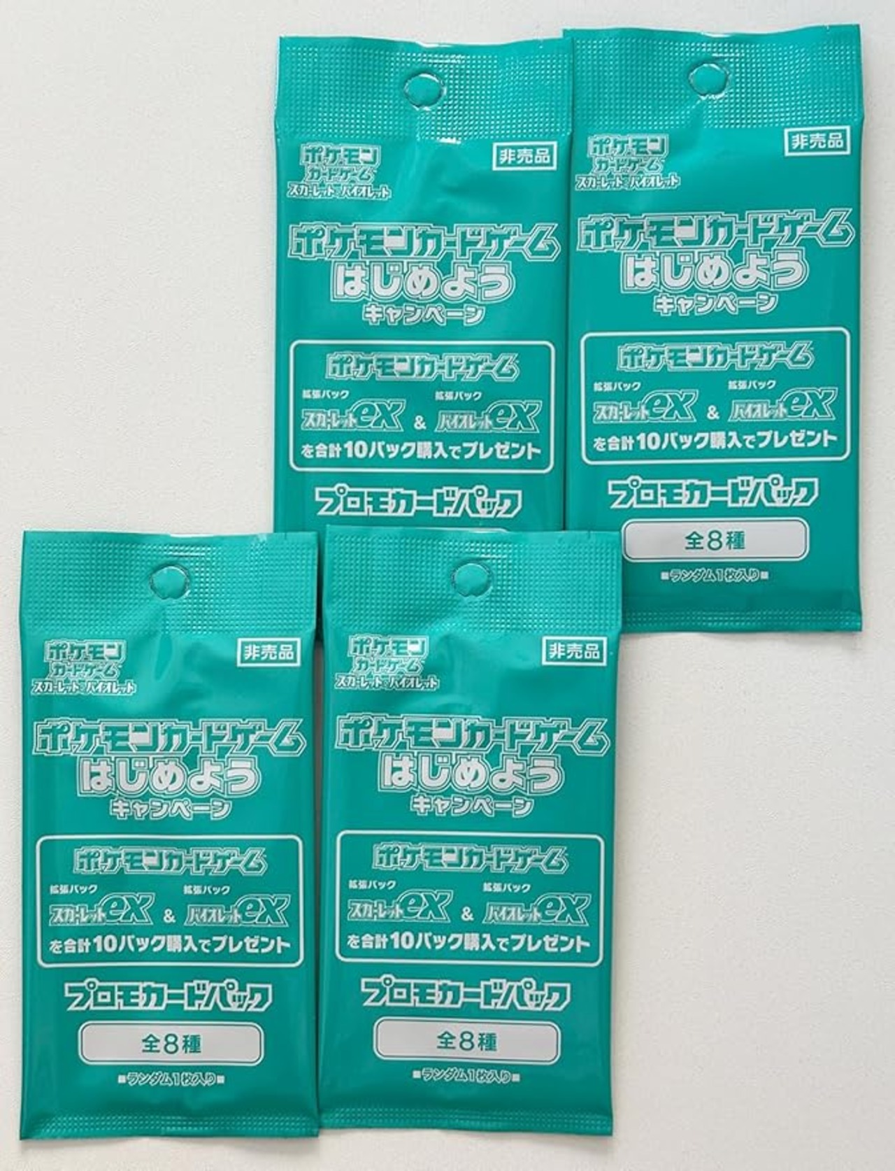 ポケカのスカーレット・バイオレットシリーズはじめようキャンペーン プロモカードパックのお得な4パックセットです。封入はランダムで何が入っているかわかりません。