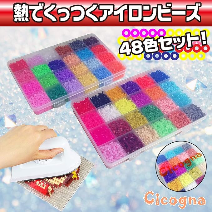 [Cicogna] アイロンビーズ 2.6mm 48色セット 約26000個 ミニサイズ 大容量 ミニ アイロン ビーズ メイキングトイ