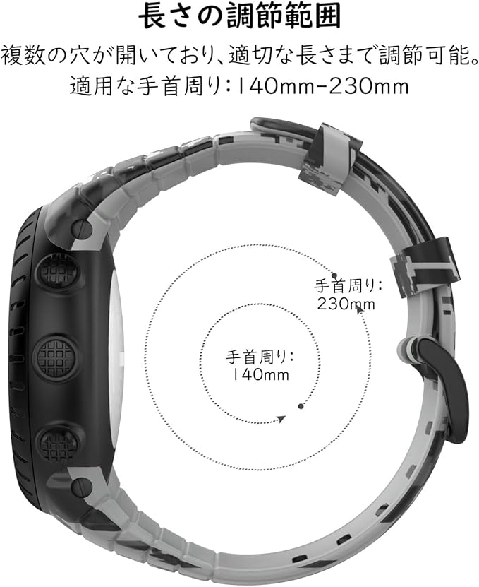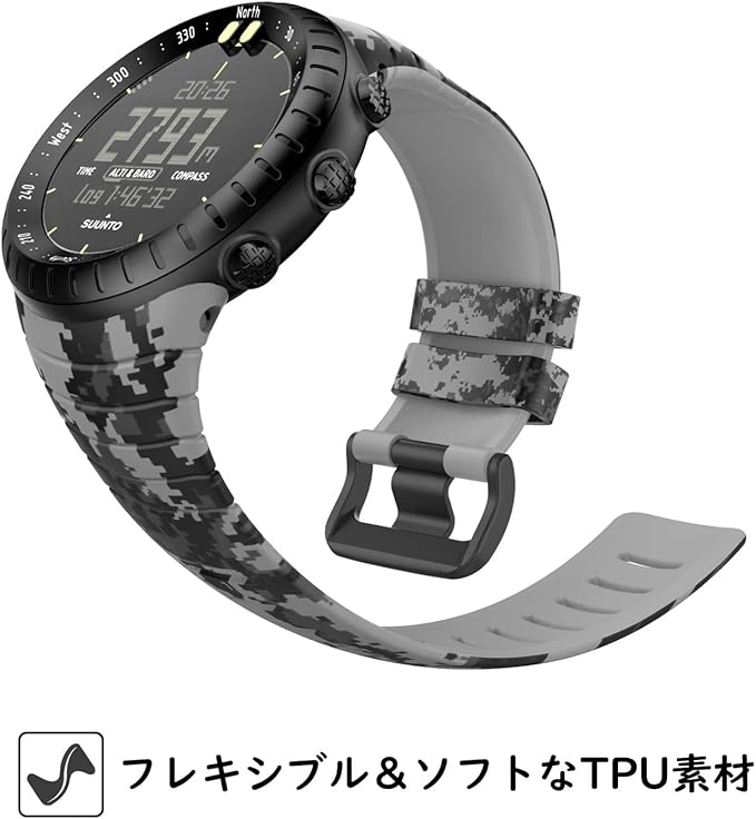 [ATiC] Suunto Core バンド SUUNTO(スント) Coreコア専用 迷彩シリーズ ソフト TPU製 ストラップ/バンド 交換ベルト ねじ回し/バネ棒付き 腕サイズ:5.51"-9.06" (140mm-230mm) デジタル迷彩