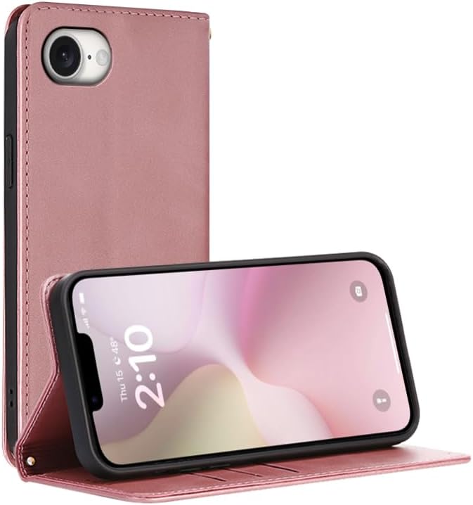 linlingo ケース 手帳型 に適用するiPhone16E用の ケース 手帳型 手帳型ケース 適用 16e スマホケース カバー 手帳型 PUレザー カード収納 財布型 耐衝撃 ケース マグネット スタンド機能付き (ライトローズゴールド)