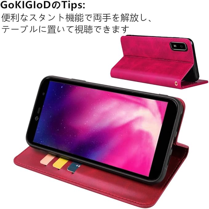 AQUOS wish2 SHG08 SH-51C A204SH ケース 手帳型 ストラップ 同梱 AQUOS wish SHG06 適用 ウィッシュ A104SH SH-M20 AquosWish 手帳ケース ウィッシュ2 スマホケース ウィッシュ2ケース wish2ケース 手帳 【GoKIGIoD】 財布型 内蔵マグネット 弱磁 カード収納 ストラップホール スタンド機能 レトロ ローズレッド
