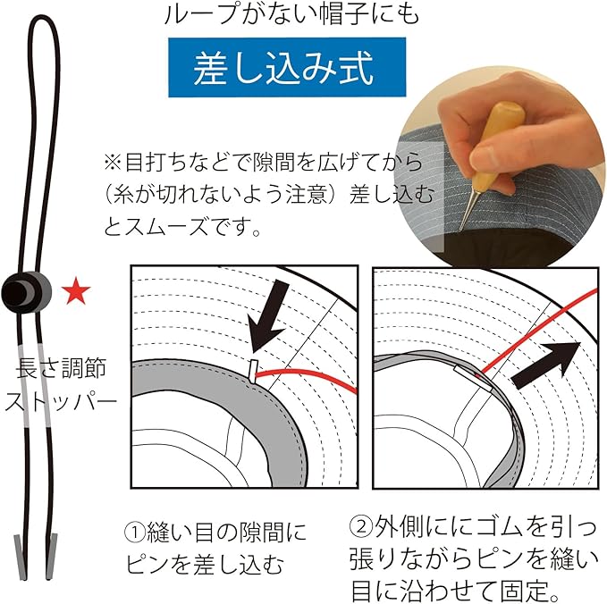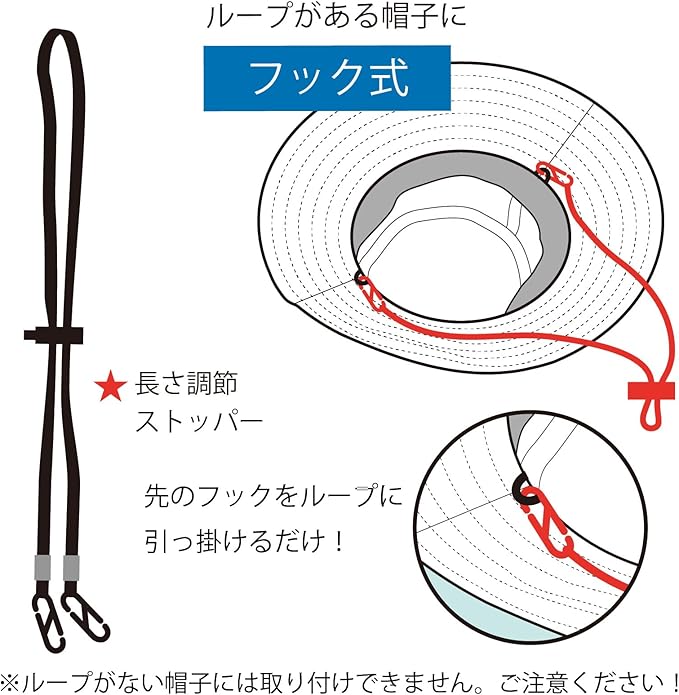 [TRAX SHOP] 帽子のあご紐 3種類セット クリップ フック式 差し込みタイプ 顎紐 あごひも 帽子クリップ 後付けあご紐 後付けのできるあご紐3種類セット 風で飛ばない 自転車で飛ばない