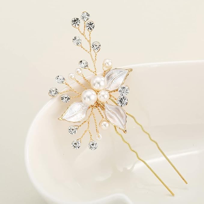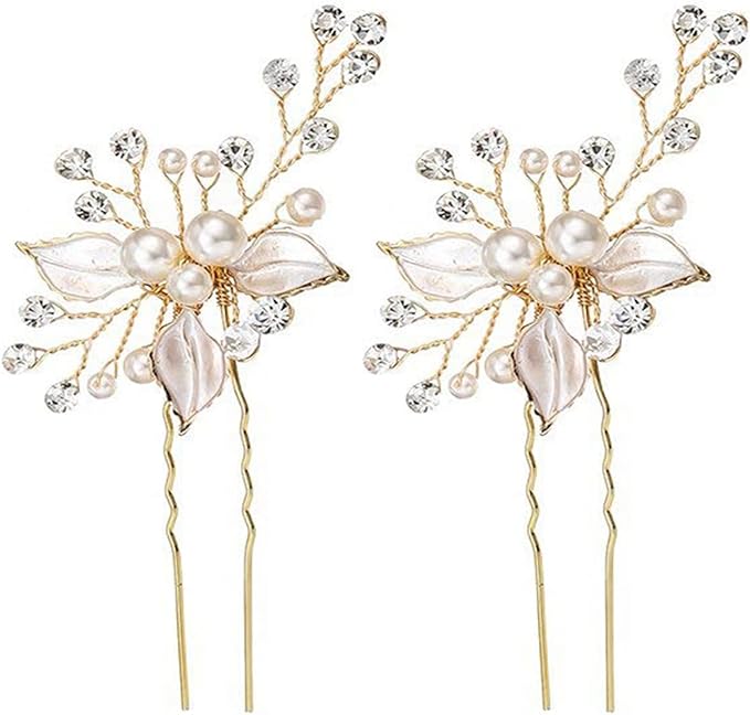 DFsucces ゴールドヘアピン 三つ葉 ヘアピン 結婚式 二次会 発表会 卒業会 パール 髪飾り (ゴールド-2本セット)
