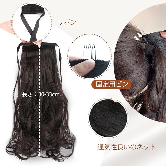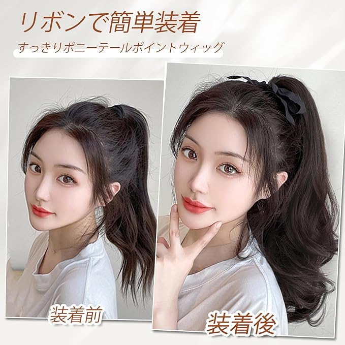 【リボン式ポニーテール】:地毛のように自然な髪質で、本物の髪のように自分の髪に馴染みやすく、髪を結び、ウィッグのクリップで固定するだけです。