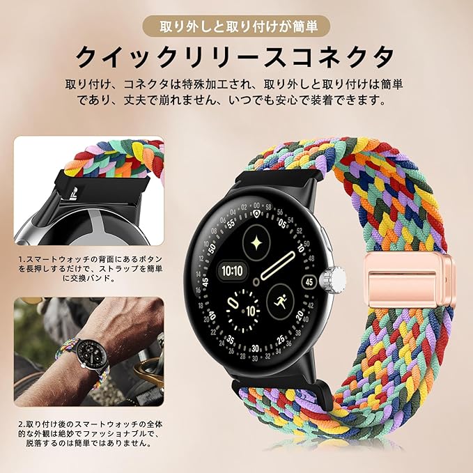 [YealRed] バンド For Google Pixel Watch 4/3/2/1 41mm 用 交換用ストラップ 弾性ナイロン製 替えベルト 編組ストラップ 磁気バックル 換えベルト マグネット 交換 バンド 男女兼用 グーグル ピクセル Watch 1/2/3/4 41mm に対応 (W カラフル)