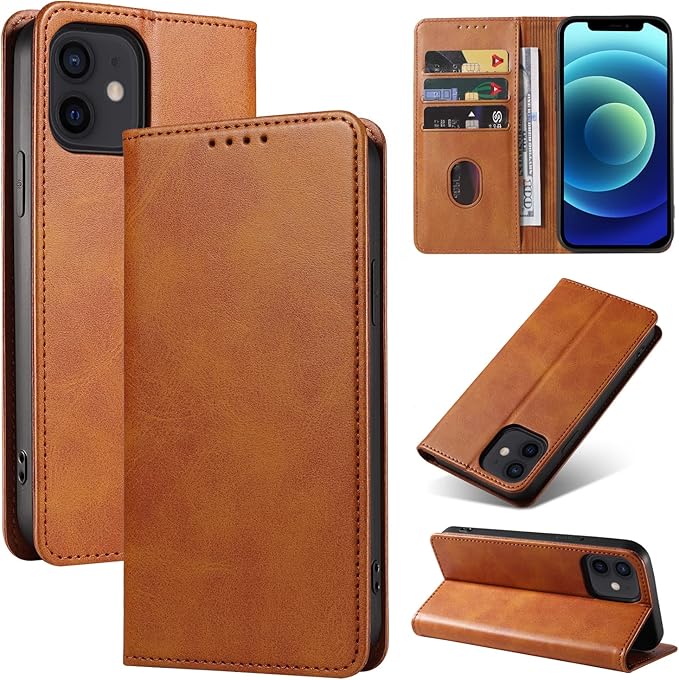 iPhone12 ケース iPhone 12 PRO ケース イフォン12/12 PRO スマホケース 手帳型 携帯カバー レザー 耐衝撃 軽量 着脱しやすい 放熱性 マグネット式 カード収納 スタンド機能360度保護 PinLiSheng (カーキ色, iphone12/12pro)