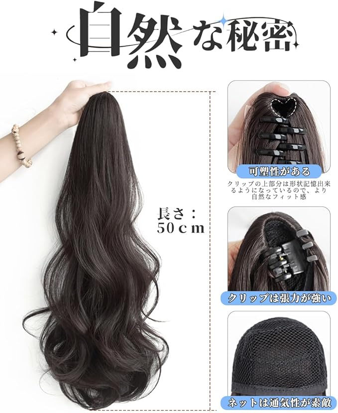 【簡単に着用】 1.しっかり留まるクリップ式 2.地毛にはさむだけで簡単に着用できます。 3クリップは小さくて簡単に隠すことができます。 4.初心者でもすすめです。
