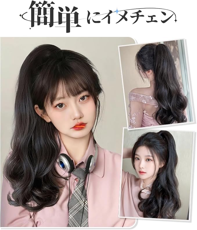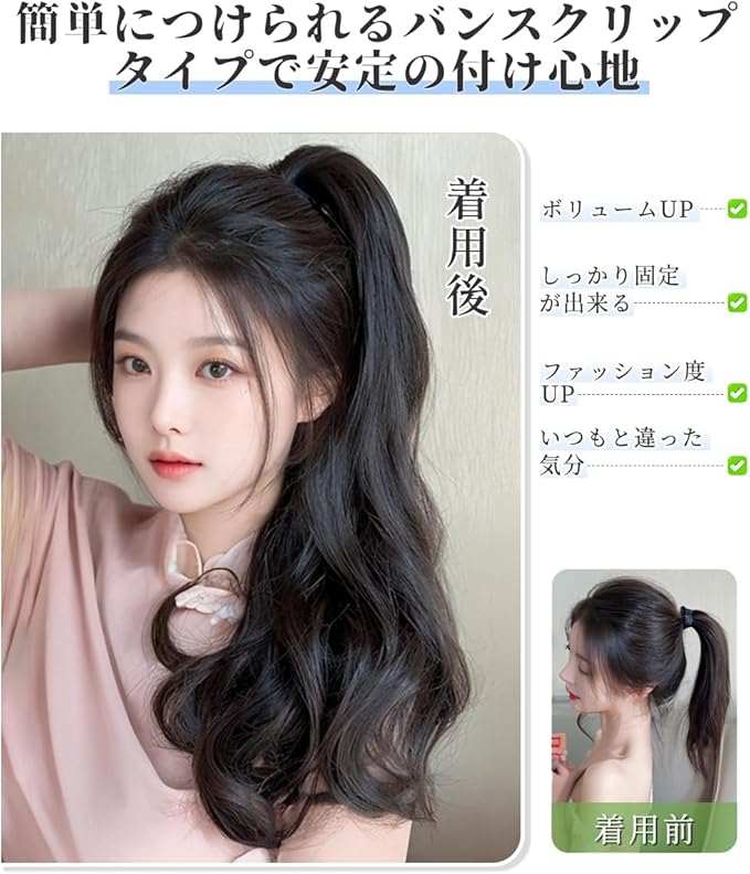 【ふわふわ巻き髪ポニーテール】 ボリューム感たっぷりの巻き髪ポニーテールのエクステ ウィッグ。 ふんわり巻き髪で大人かわいいを演出できます。 簡単イメチェンで、いつもと違う自分をお楽しみください。