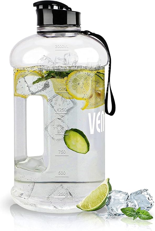 VENNERLI ハーフガロンウォーターボトル 2.2L Lサイズ スポーツウォーターボトル ハンドル付き 72オンス BPAフリー 再利用可能 プラスチックウォータージャグ 漏れ防止 ハイドロボトル ジム ヨガ 旅行 キャンプ サイクリング アウトドアスポーツ用 (クリア)