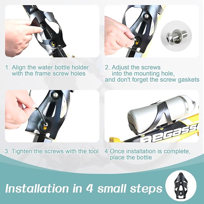 【装着簡単】2本のステンレス鋼ボルトが付属しています。4mmの六角レンチ(付属しています)を利用して、ボトルケージを固定します。フレームの位置は、楕円形の取り付け穴から調整できます。