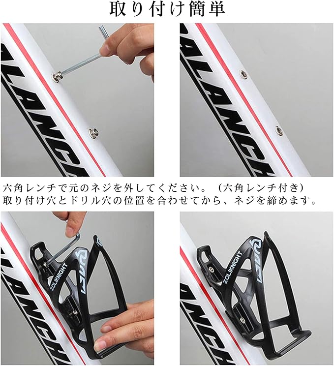 【取り付け簡単】自転車のハンドルバー、フレーム、シートポストなどを好きな場所に取り付けることができて、傷を付けません。ネジと六角レンチなど必要な取り付け金具を含め、ボトルケージの台座に簡単に取り付け可能です。しっかりと固定するためにワッシャーをお勧めします。