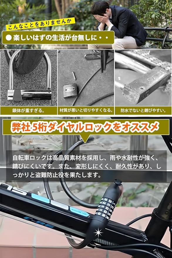 ✅【簡単なパスワードセット】自転車固定式ロック①数字の周りには凹凸の設計感があり、一斉に調節させ、最初のパスワードは00000です。②最初のパスワード「00000」を維持したままで、時計回りに錠前を回します。③新しいパスワードをセットした後、逆方向で「SET」を回してください。④これで、新しいパスワードが設定されました。