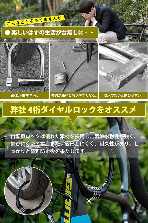 ✅【高品質素材】自転車ロックは高品質素材を採用し、雨や水耐性が強く、錆びにくいです。また、変形しにくく、耐久性があり、しっかりと盗難防止役を果たします。自転車、ATV、その他のものを盗難から保護します。