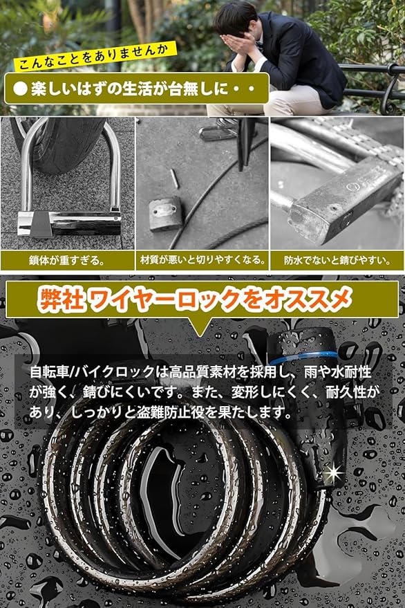 ✅【防犯性能を追求した高切断耐性】特殊スチールワイヤーに独自の熱処理加工を施し、ボルトカッターやニッパーへの耐性を強化。第三者による不正切断を防ぐ防犯基準認証対応構造で、大切な乗り物をしっかりガード。