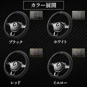 【選べるカラー!】ステッチ部分のワンポイントカラーは、レッド(赤)、イエロー(黄色)、ホワイト(白)、ブラック(黒)の4色をご用意しているので、愛車に合わせてお選びください。※円形(O型)ハンドルには適応しておりませんので、予めご了承ください。