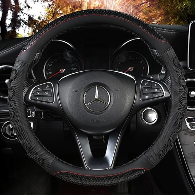 SEKIDAR ハンドルカバー 車用軽自動車 普通車 おしゃれ 滑り防止 汚れ防止 オールシーズン対応 ハンドル 保護カバー カスタム 内装パーツアクセサリー 適当な 38 cm 車用 ハンドルカバー ブラック