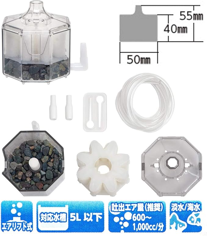 小型水槽に最適なコンパクトサイズ。●適合水槽:5リットル以下 ※ボトムプレート各種、エアパイプユニット各種は使用できません。