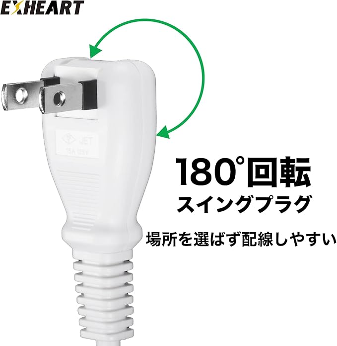 EXHEART 断線に強い延長コード 2m ホワイト 高強度ケーブル スイングプラグ 耐トラッキング絶縁カバー EXE-1020RD