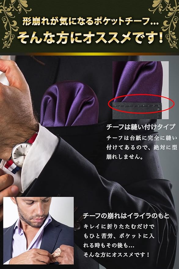 [ベスト アイテム] ポケット チーフ ワンタッチ ホルダー付 1点 2点セット 3点セット メンズ パーティー 結婚式 サテン チ_02