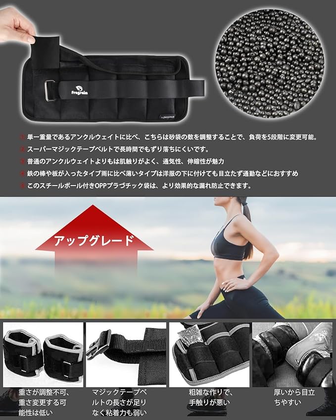 Fragraim アンクルウェイト 5段階調節 2個組最小1.5kg-最大8kg 筋トレウェイト 重り 手首 足首 パワーアンクル 重さ調整可能 片足0.75kg/1.5kg/2kg/2.5kg/3kg/4kg ソフト 速乾 通気 ウォーキング ジョギング 体幹トレーニング エクササイズ 男女兼用 初心者