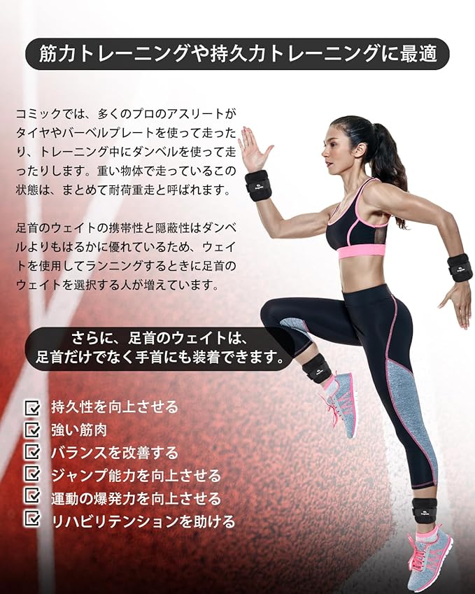 【様々な場合で活躍】普段の生活から日常生活から、ウォーキング、エクササイズなど幅広く活躍できるレガース式アンクルウェイトです。体全身の筋力トレーニングを狙って的確に鍛えられます。 ヒップアップ ・ 筋力UP ・ストレッチ ・ リハビリ ・肩こりなど、様々な用途で利用可能。